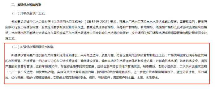 近日,關(guān)于加強(qiáng)城市供水安全保障工作的通知中明確指出: